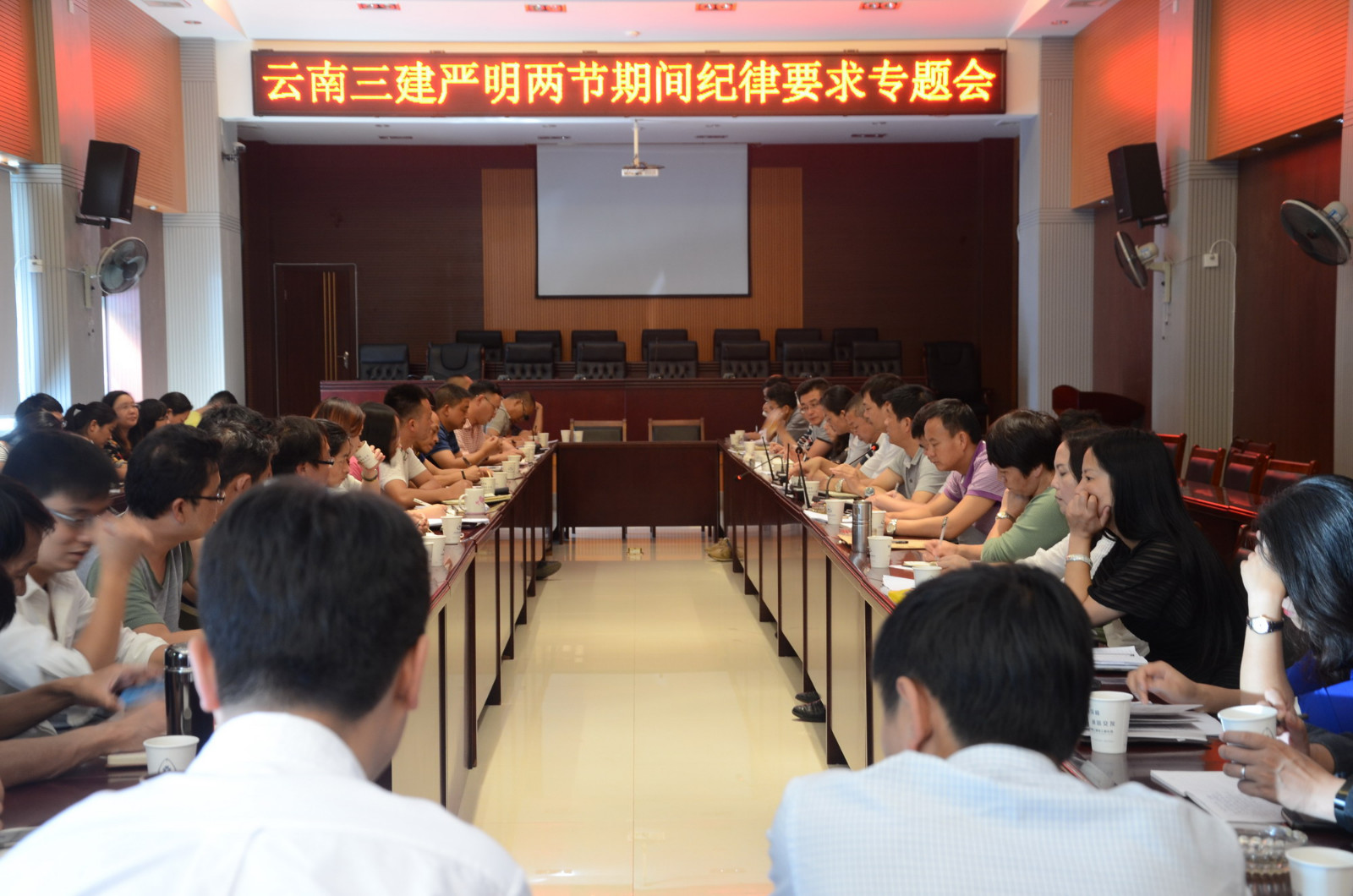 9 月29日,公司在機關大會議室召開兩節期間安全生產部署會暨紀律要求專題會。公司董事長龔樹華、黨委書記彭云、總經理楊少真出席會議,公司其他在昆班子成 員(含擴大)、各基層單位負責人、部門負責人參加會議。會議由楊少真主持,圍繞如何廉潔過節,如何開展節前節后生產經營工作兩大主題進行。